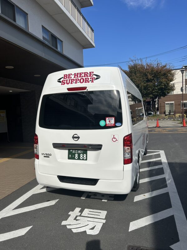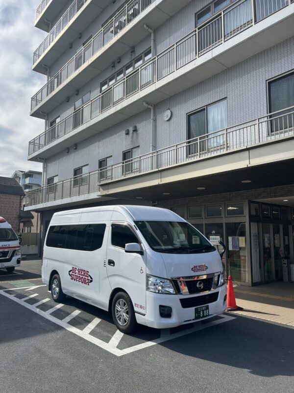 患者様はご自身所有の車椅子で搬送希望。ご家族2名がお付き添いで同乗される。朝、8時半お迎えなので8時には到着し10分前に