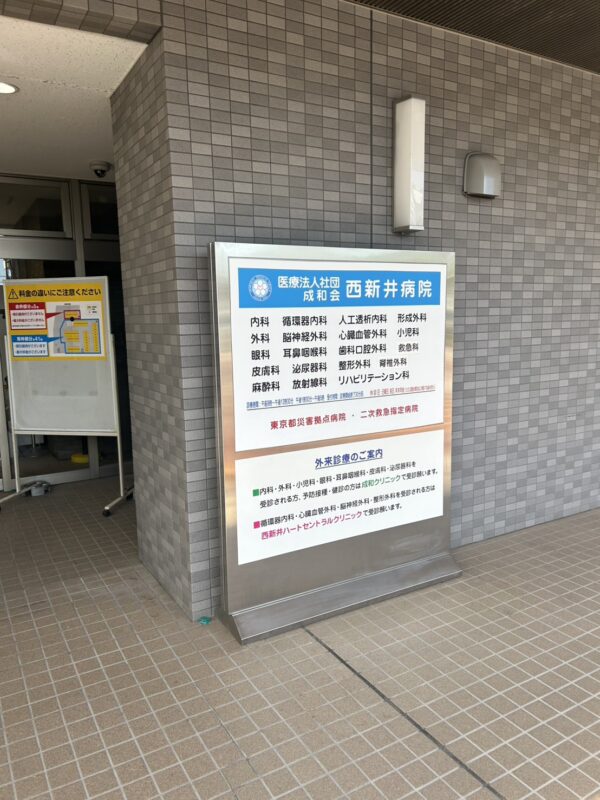 10分程で西新井病院に到着。ご家族様、患者様の順に降りて頂き院内へ。皆様にご挨拶を済ませて往路終了。