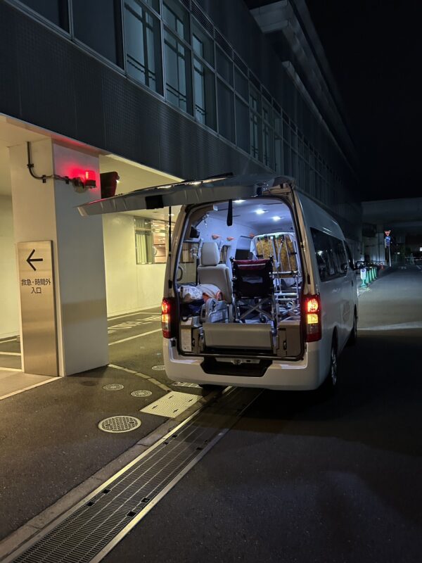 11月20日 (木) 深夜2時頃、問い合わせが入り救急搬送された奥様の処置が終わり病院からご自宅までの搬送依頼だ。