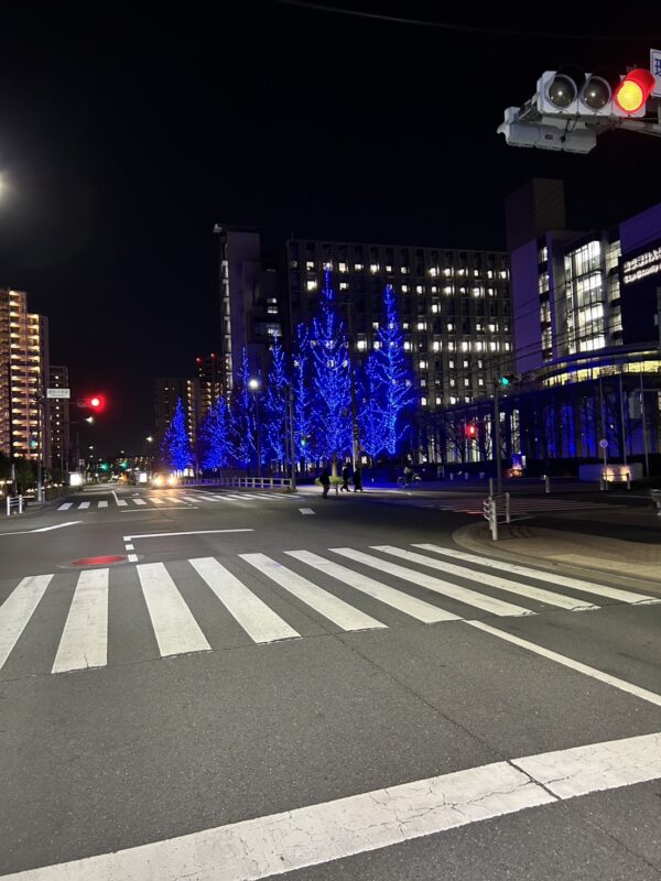 病院に近づくと東京理科大学 葛飾キャンパスのイルミネーションが見える。もうすぐ到着だ。