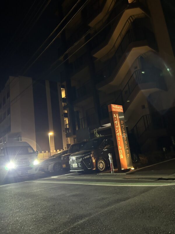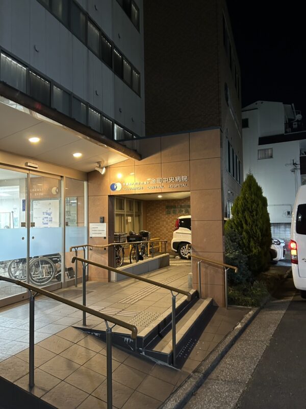 電話を受けてから40分で病院に到着。正面玄関前に車両を着ける。