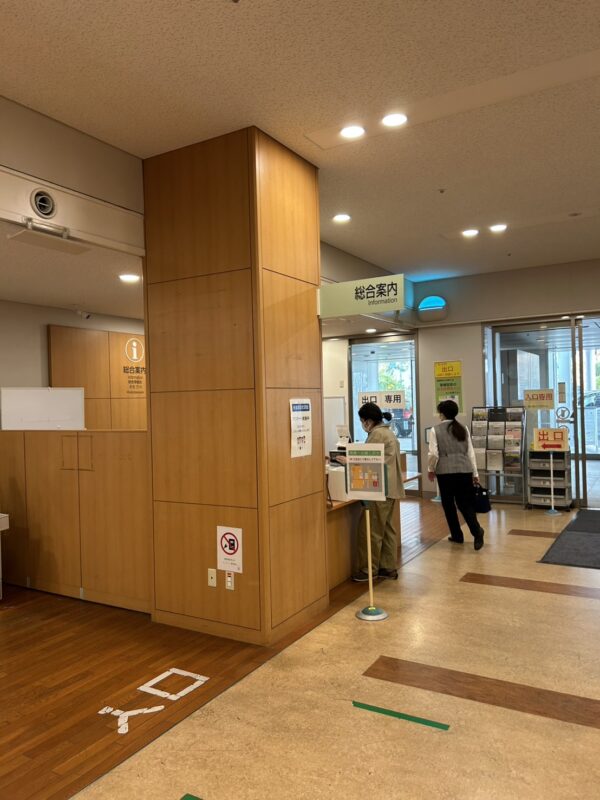 10分前になったので、入り口で入館手続きをして入門証を貰い、エレベーターで入院されている