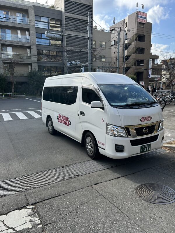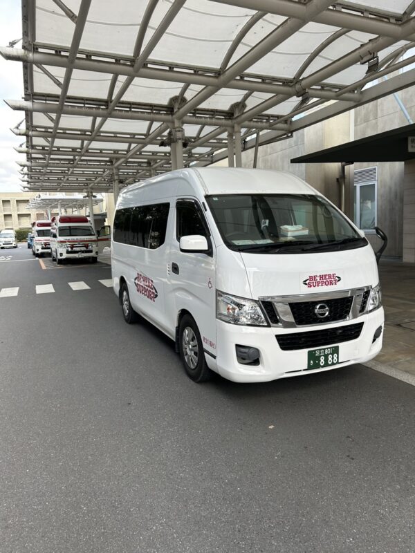 車椅子の患者様をリフターを使って車内にご搭乗。娘様はご自身の乗用車で来られたので