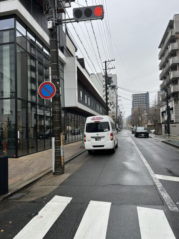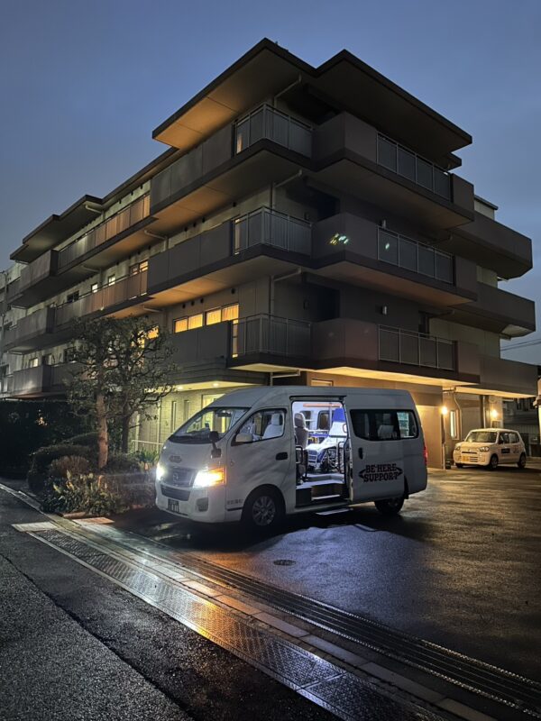 世田谷区ニチイケアセンター大蔵に到着。息子様、補助スタッフの順に降りて