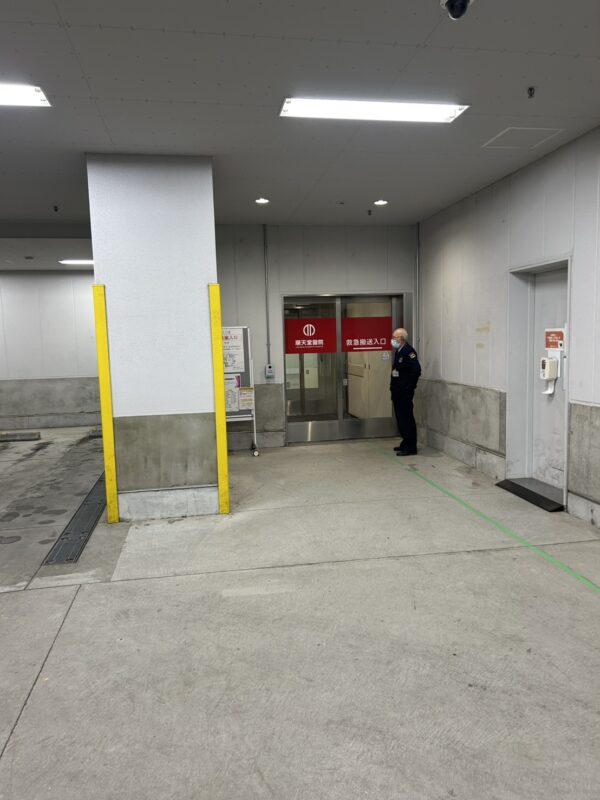 との事だったので、指示通りスロープを上がり普段、救急車が停まるであろうスペースに車両を停める。