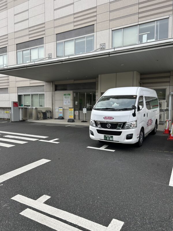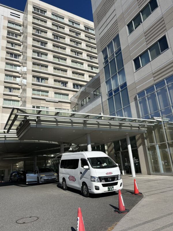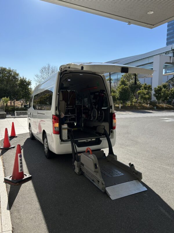 リフターを使って車両にご搭乗。お姉様も同乗したところでがん研有明病院に向け出発。