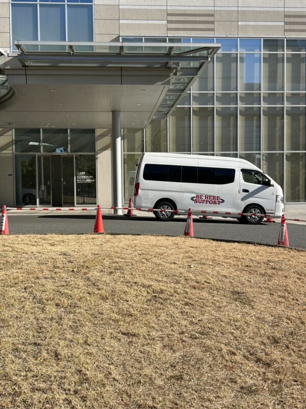 守衛室に入門証を返し、お荷物を先に積み込む。続いてリフターを使い患者様を車内にご搭乗。
