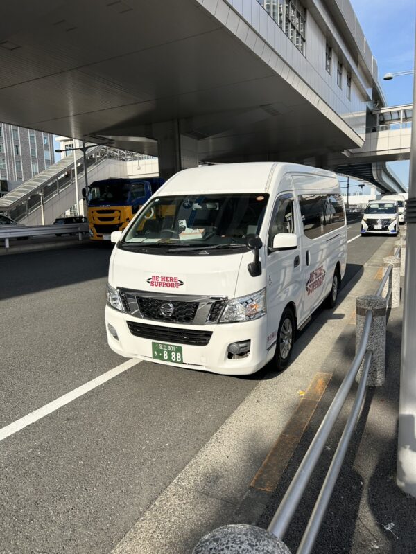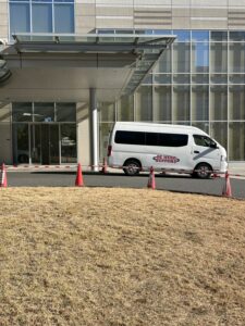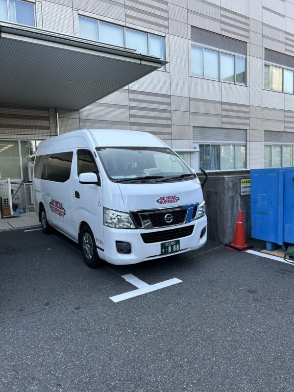 患者様をリフターを使って車両にご搭乗。荷物を積み込みお姉様が同乗したところでご自宅に向け出発。