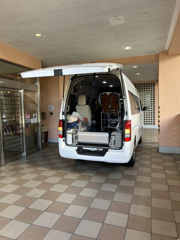 ご家族にご挨拶を済ませ、あらかじめリフターを降ろしておいたので、すぐに患者様を車内にご搭乗。