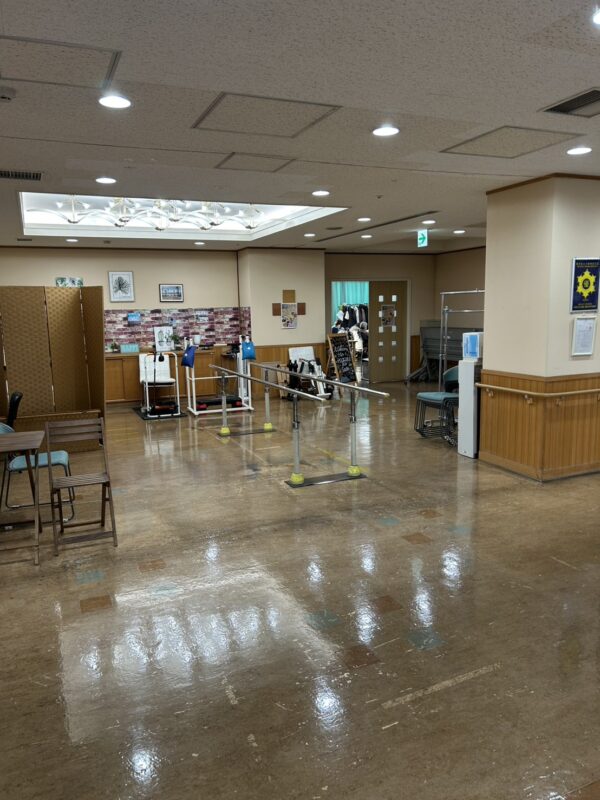娘様ご夫婦も付き添わなければならない為、施設のリクライニング車椅子をみずべの苑に