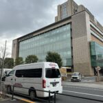 永寿総合病院に15分程で到着。正面玄関の車寄せに車両を着け、先に施設スタッフに降りて頂き