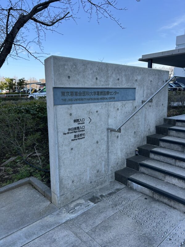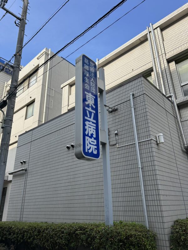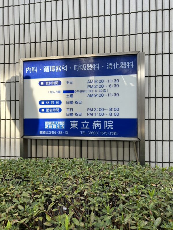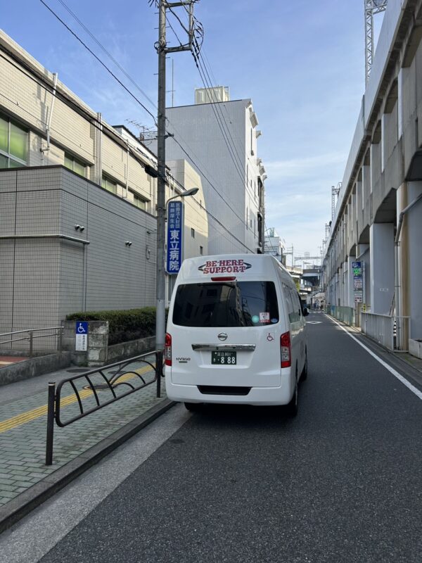 9時15分お迎え希望なので、葛飾区立石にある東立病院に9時に到着。10分前まで正面玄関前で待機して