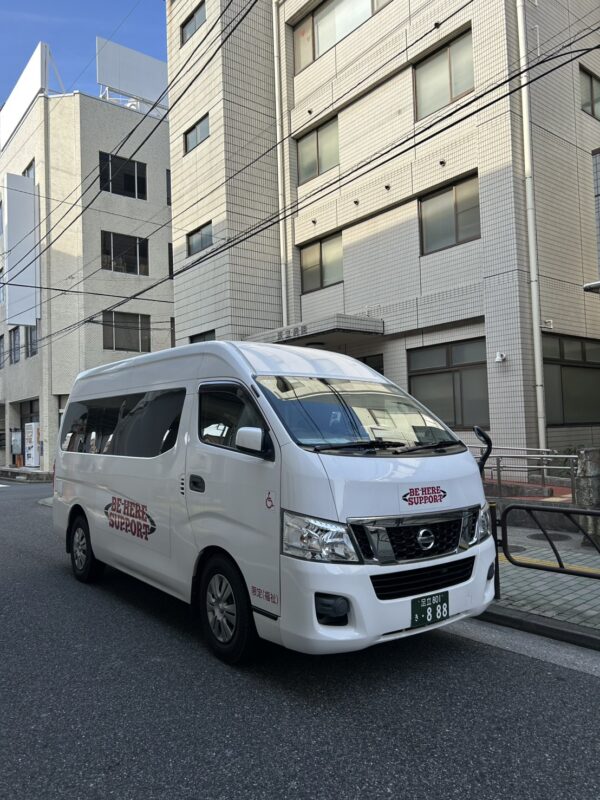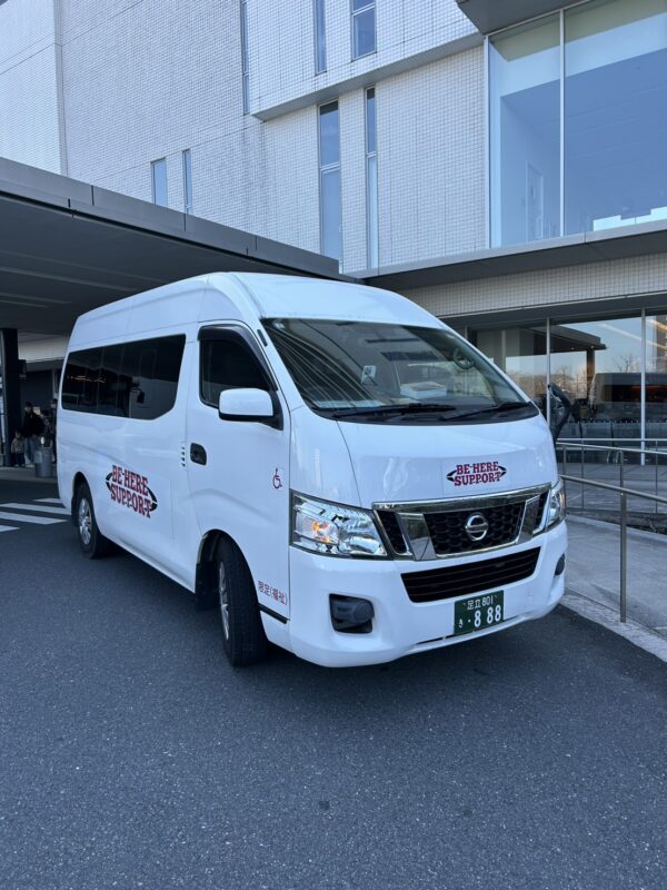 ロビーにいたお兄様にもご挨拶して正面玄関を出てスロープを降り、リフターを使って車内にご搭乗。