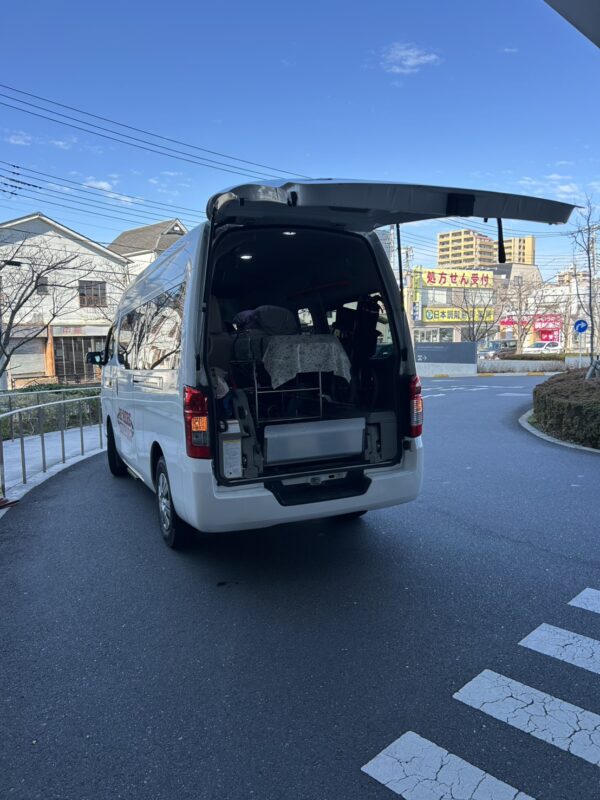 お付き添いのお兄様にも同乗頂き、東京慈恵会医科大学葛飾医療センターに向け出発。