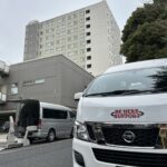 一般外来受付の前あたりで車両を停め、リフターを使い患者様を降ろし、