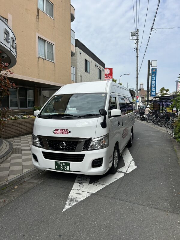 9時お迎えなので10分前に到着し、ご自宅前に車両を停め、あらかじめリフターを降ろしておく